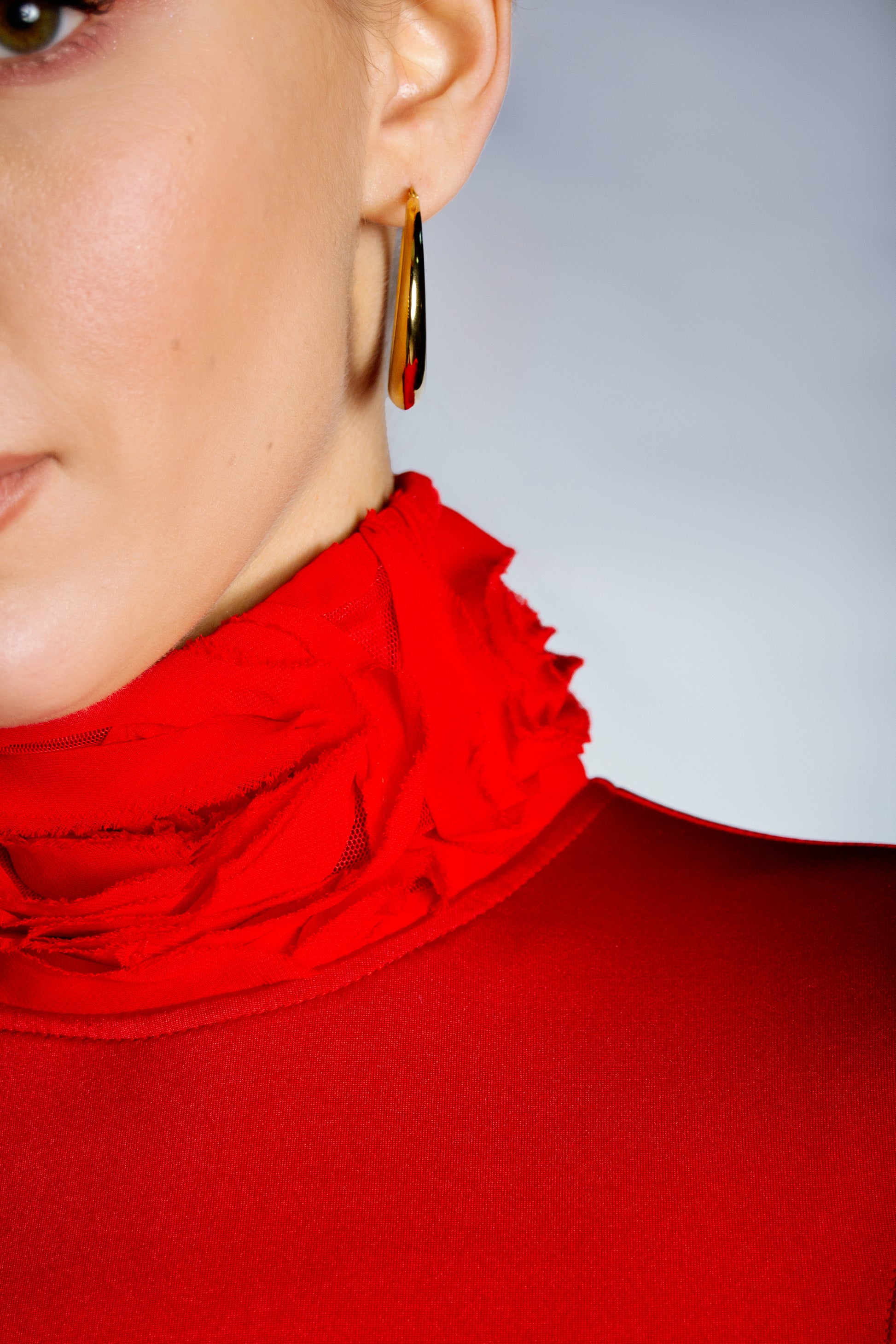 Dramatic and passionate, this red skirt is made entirely of roses, forming a voluminous, sculptural masterpiece. A show-stopping piece that speaks of love, power, and confidence.